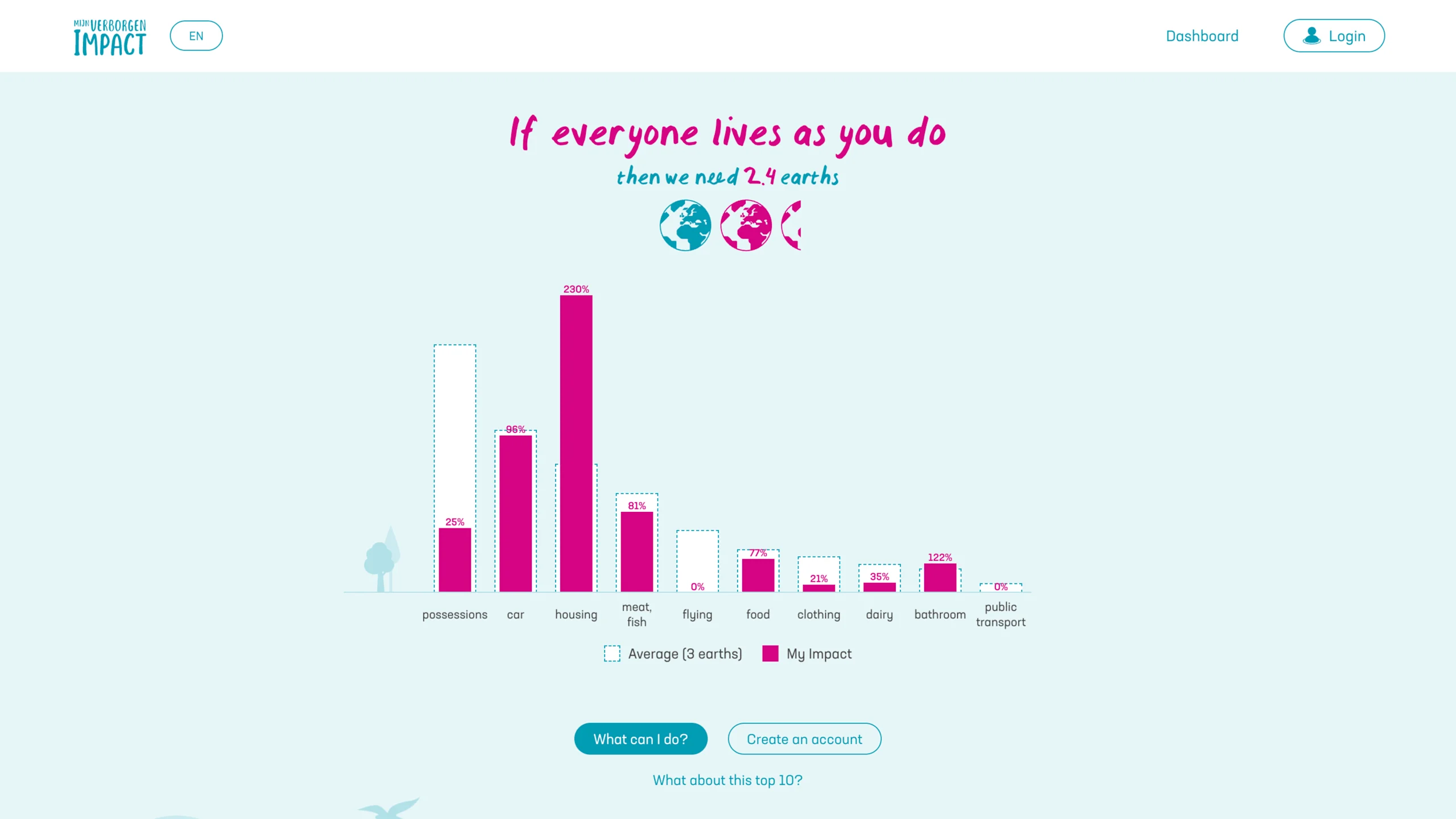 What seems to be an average daily activity may be harmful to the planet. MyHiddenImpact carbon footprint calculator displays the result of how many earths we need if continuing the habit.