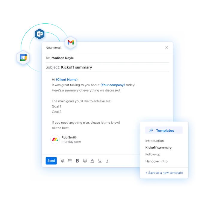 Let the system take care of the repetitive work for you. monday CRM can assign tasks, generate summaries, rewrite emails, and even build reports—giving your team more time to sell. monday CRM also offers the kind of automation and AI-powered CRM features for Enterprise users.
