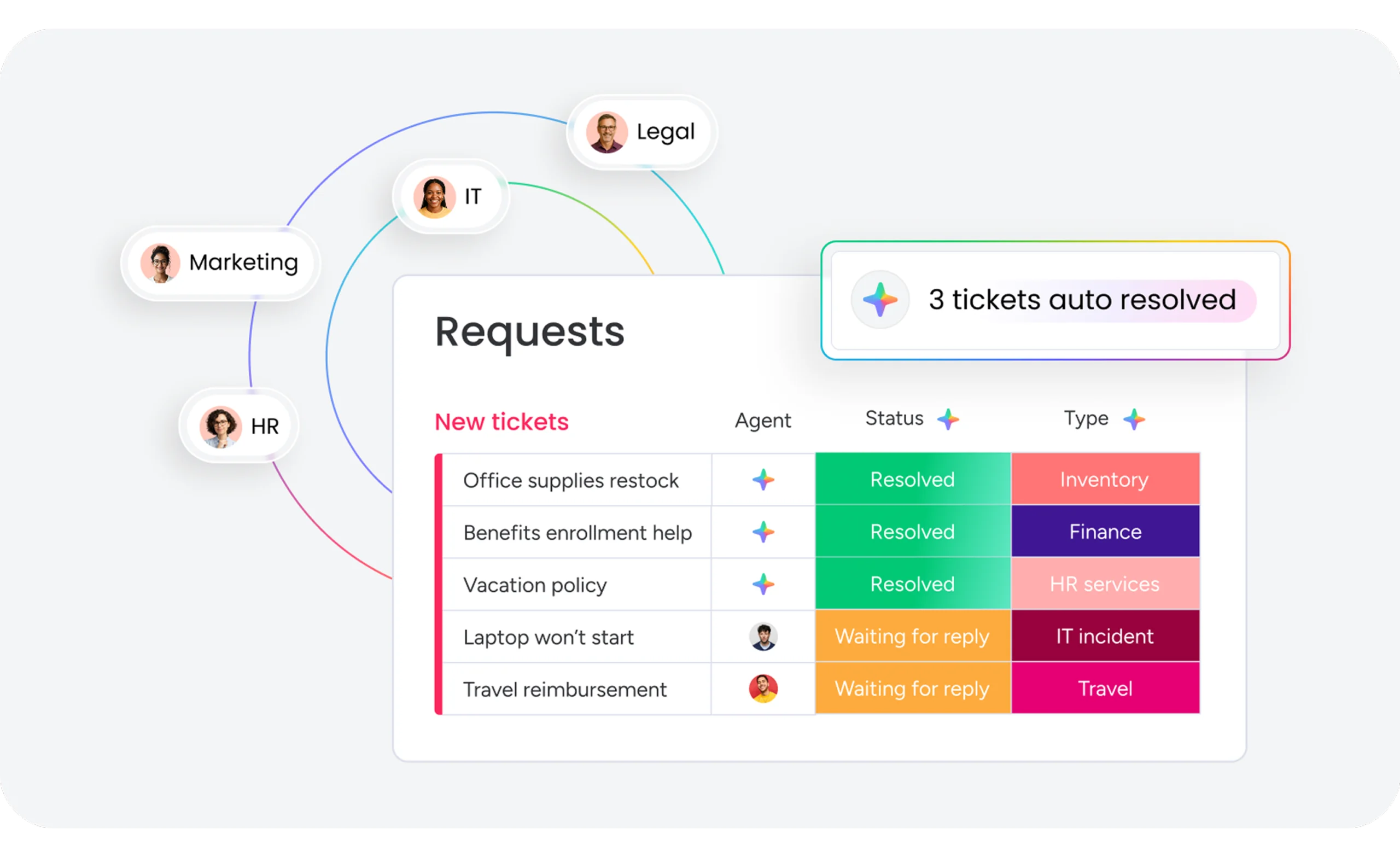 Ubah request menjadi workflow yang terstruktur. monday service menyederhanakan otomatisasi tiket AI sehingga setiap request dapat dipantai, diprioritaskan, dan diselesaikan lebih cepat.