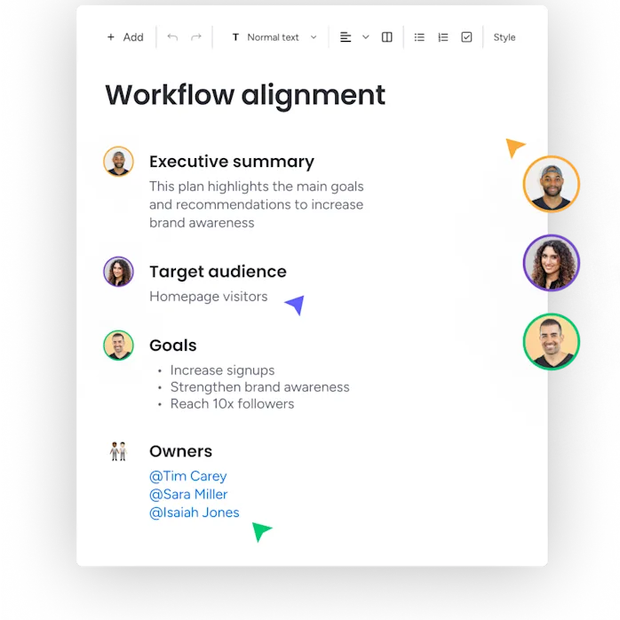 monday Work Management memberdayakan tim untuk bisa berkolaborasi di manapun dengan menggunakan Workdocs, whiteboards, dan Updates sehingga semua orang tetap berjalan selaras.