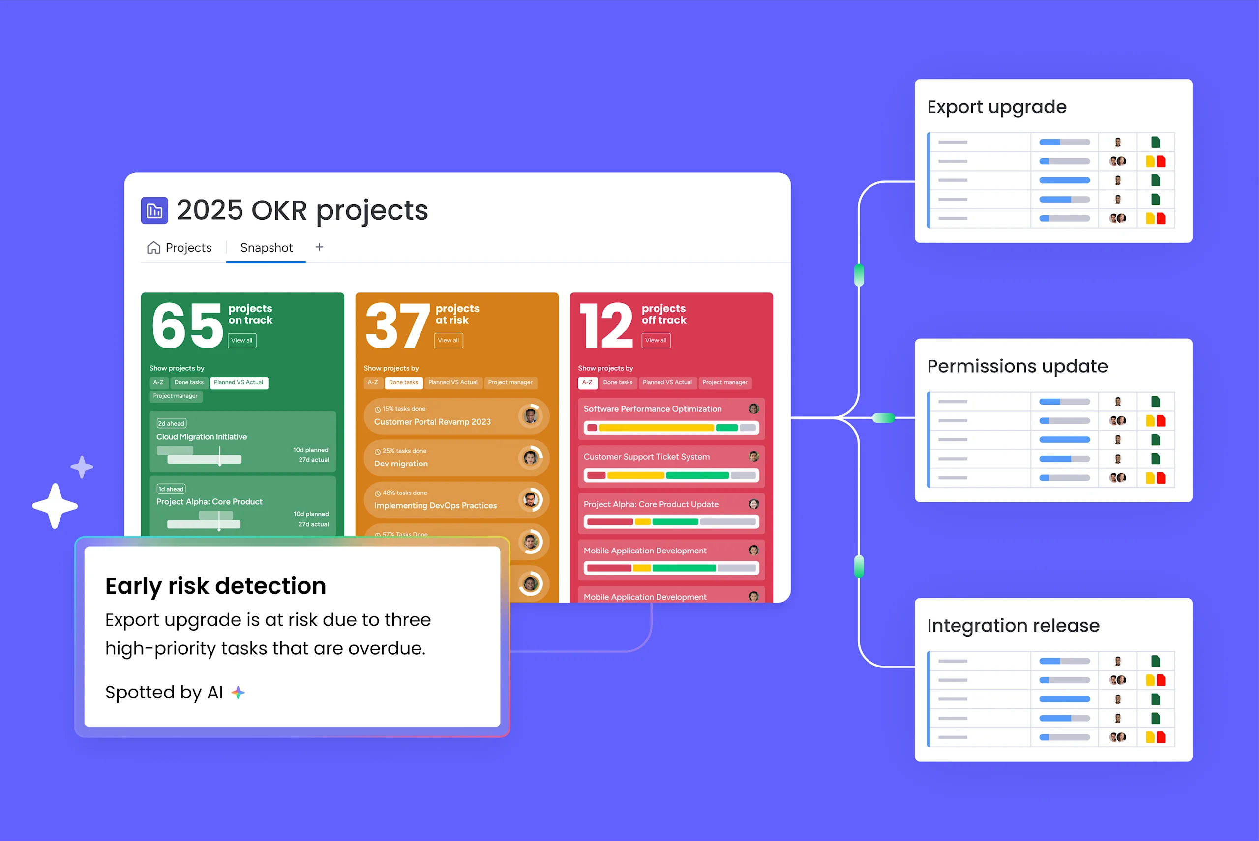 Mulai dari mengatur tugas harian, mengelola proyek besar, hingga kolaborasi lintas departemen, monday.com Indonesia hadir dengan workflow yang bisa disesuaikan, otomatisasi pintar, dan pelacakan real-time. Ditambah lagi dengan dashboard yang intuitif, insight berbasis AI, dan integrasi tanpa hambatan, tim Anda bisa bekerja lebih efisien dan mudah mengambil keputusan berbasis data dengan percaya diri.