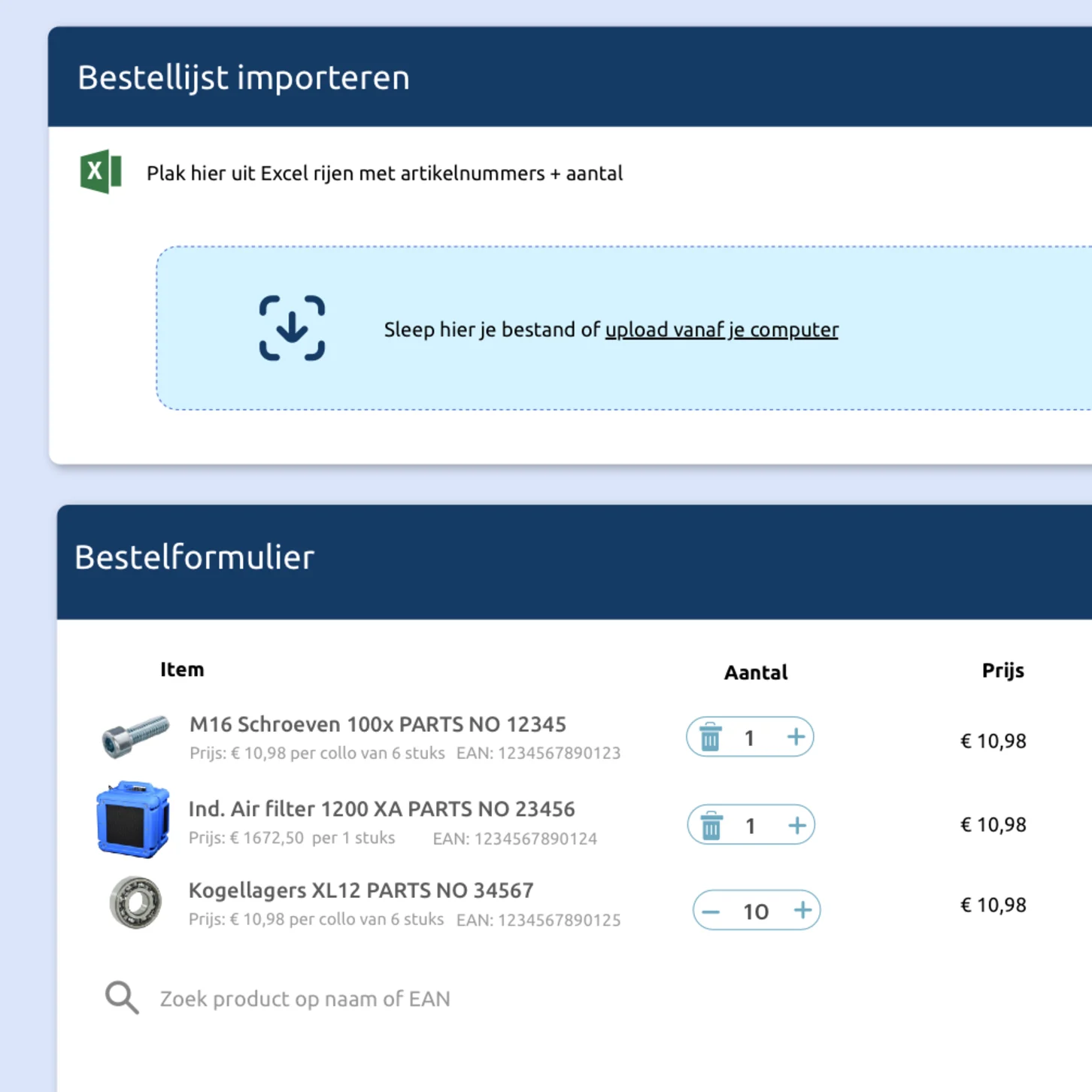 Voor inkopers is efficiëntie cruciaal. Het bestellen van producten moet net zo makkelijk zijn als het invullen en versturen van een spreadsheet of pdf.