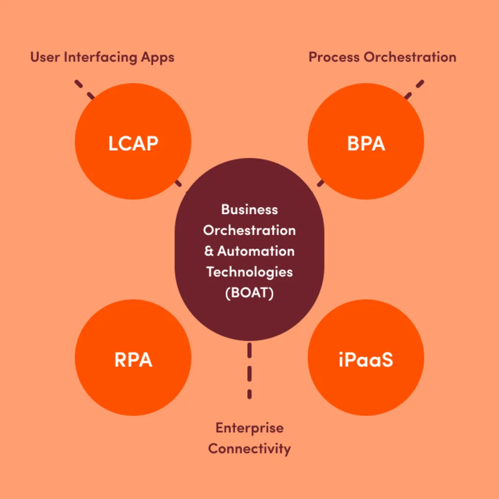 Dát is de beweging die organisaties nu moeten maken. BOAT – Business Orchestration & Automation Technologies – is een door Gartner geïntroduceerd concept dat precies daarvoor bedoeld is. Het brengt mensen, processen en technologie samen in één samenhangend geheel. Geen losse tools of eilandjes, maar grip op het hele speelveld.