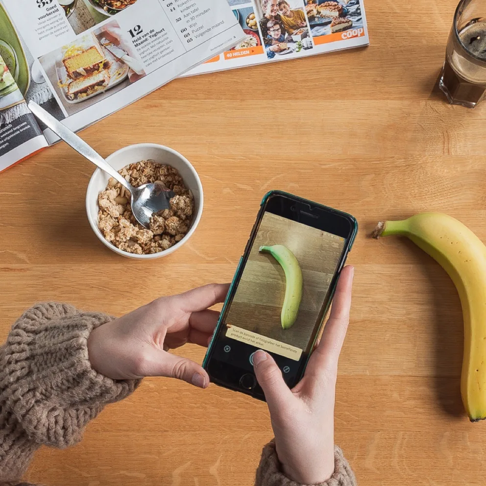 In de tussentijd experimenteerden we ook nog met de beeldherkenningssoftware. Na een geslaagde demopresentatie hakte Coop gelijk de knoop door: dit willen we! Zo bouwden we de innovatieve productscanner in drie weken uit tot een volledig werkende dienst.